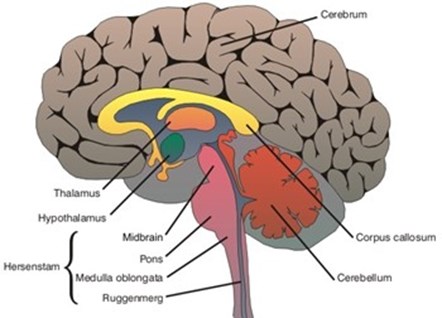 Hersenstam: (medulla oblongata, pons en midbrain):